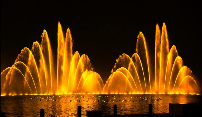 The 126-meter-long fountain finds itself at the Lakeside Three Park (Hubin 3 Park). The nearby Hu Bin International Boutique Compound is the most striking area of Hangzhou city at night.