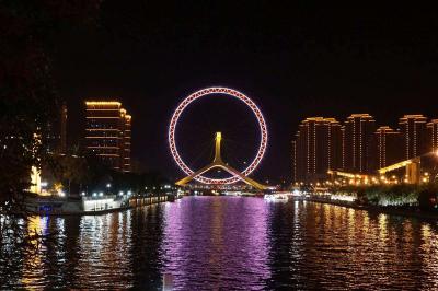 The Eye of Tianjin is a ferris wheel across the Haihe River, like an eye on the bridge. It is one of the most famous landmarks in Tianjin. The ferris wheel is driven by electricity and has 48 passenger capsules. Each capsule is able to carry eight passengers for a half hour rotation. Every night the colorful lamps of the Eye of Tianjin will attract numerous visitors for sightseeing and photo shooting, enjoying a different kind of romance.