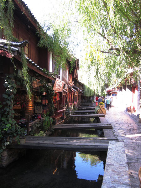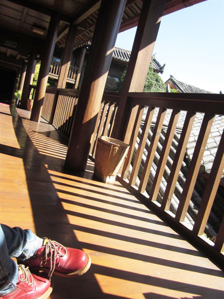Last night, Sarina and I made different decisions on how to spend the last day in Lijiang. She decided to join in a group to Tiger Leaping Gorge and I will just stay in the ancient town for a leisure day. It might be a pity to miss amazing view of Tiger Leaping Gorge, but to me, leisure and relax are the main keys of holiday, especially in Lijiang. How could I leave if I don’t spend at least half day to be absent of my mind, or just read a book in a nice atmosphere coffee shop? Today, I did everything slowly, had breakfast, walked inside the town, bought some souvenir. At last, I chose a small coffee shop which is on bank of the little river to spend the rest of the afternoon. The singer was singing some slow and gentle songs, and I just read a book about love stories, or feed fishes in the river.It’s really a lovely day. Slow time, warm sunshine and Orpheum songs.I guess I will come back again, just for the romantic time.
