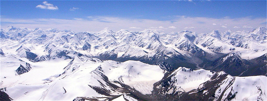The Tianshan Mountains stretch for 2,500 km in Xinjiang, bordering Kazakhstan, Uzbekistan and Kyrgyzstan. The range is home to 15,953 glaciers, the most of any mountain in the country, as well as the endangered snow leopard. About 66 percent of the world's 2,500 remaining snow leopards live in Xinjiang.