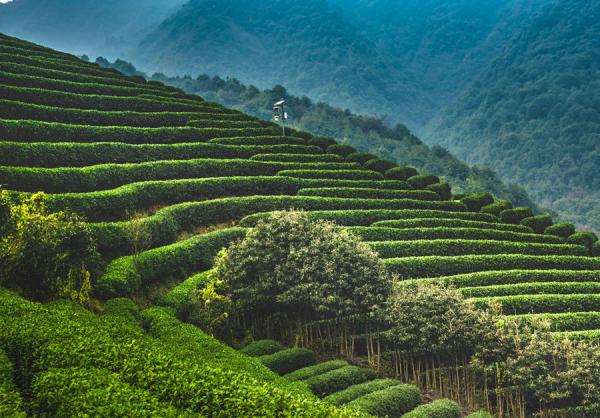 There are several tea villages around Hangzhou city, including Shifeng, Longjing, Yunxi, Hupao and Meijia Wu. And the Longjing tea is rated as he best of all. The villagers of Longjing have cultivated green tea for more than 1200 years, and now boasts approximately 55 hectares of tea plantation area. On the northwest of the village, Beigao Peak, Lion Peak and Tianzhu Peak form a natural barrier, keeping off the chilly wind from the northwest. While the deep valley and Qiantang River on the south ensure a warm and humid climate in spring and summer, making Longjing a perfect tea plantation region.