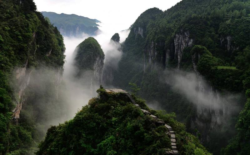 The Dehang Grand Canyon Scenic Area is in the middle of the Wuling Grand Canyon formed by the intersection of the Yunnan-Guizhou Plateau and the Wuling Mountains. The protected area is 108 square kilometers and Dehang Canyon is the most exciting part. In the area, there are towering cliffs, overlapping peaks and forests, crisscrossing streams and rivers, and the average temperature is between 16° and 18°. The climate is pleasant and dynamic all year round. The plant resources are very rich and the natural scenery is very beautiful.