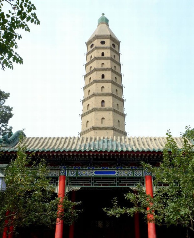 This pagoda is located in a beautiful garden. A number of small iron bells were hanged on corners of the pagoda. Via a wooden stairway, people can walk up to the top, where a panoramic view of the city is available through the windows. Today, the Museum of the Ningxia Hui Autonomous Region is situated in the temple together with the pagoda.