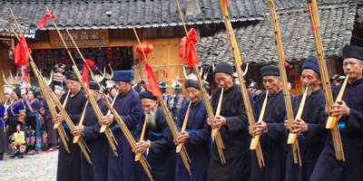 - Featured activities:Tiaohua Festival of Long Horn Miao, Fire-dragon Festival, Lusheng Music Festival, family homestay