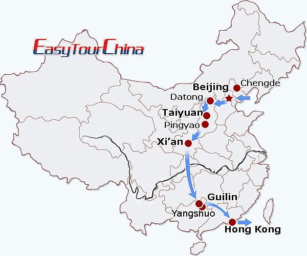 Destinations: Beijing - Chengde - Datong - Taiyuan - Pingyao - Xi'an - Guilin - Longji - Guilin - Yangshuo - Guilin - Hong Kong