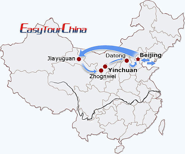 - Destinations: Beijing - Jiayuguan - Zhongwei - Yinchuan - Datong - Beijing