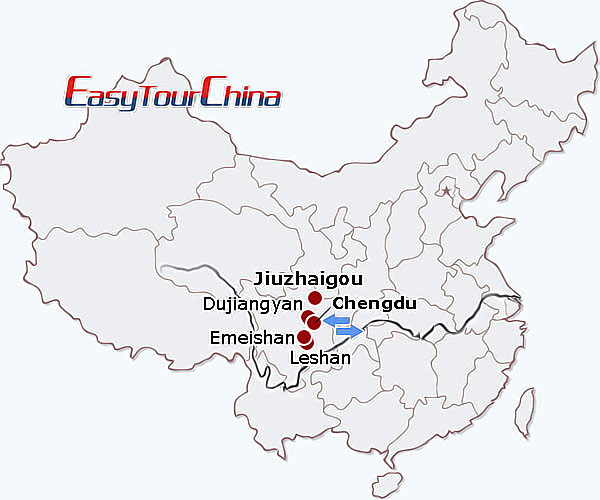 China travel map - Sichuan Highlights Tour