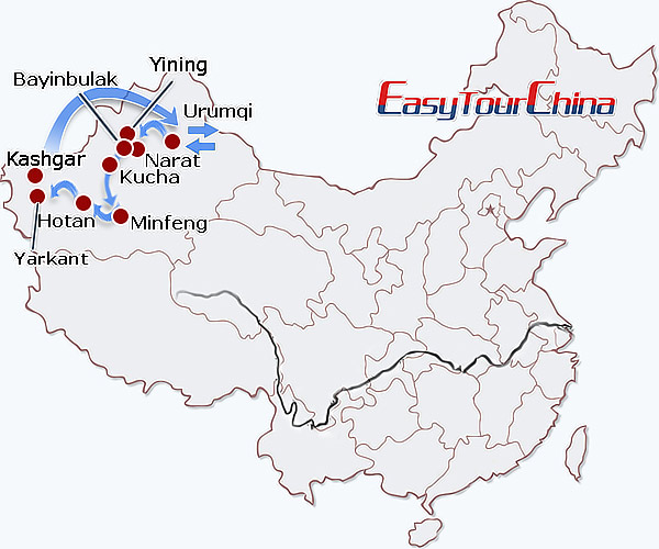 Destinations: Urumqi - Yining - Narat - Bayinbulak - Kucha - Minfeng - Hotan - Kashgar - Urumqi