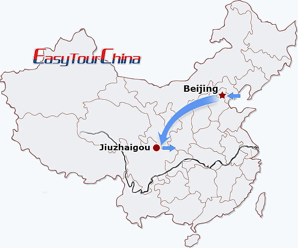 China travel map - 6-day Private Beijing Jiuzhaigou Tour